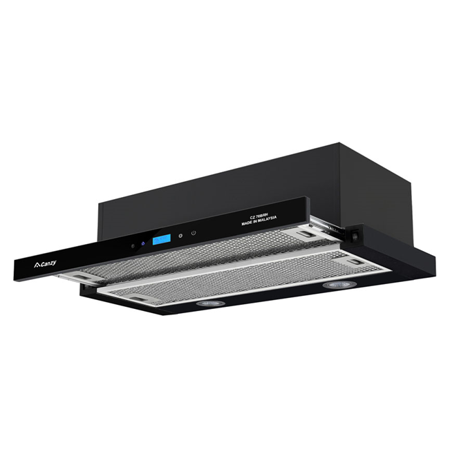 Với kích thước 70cm máy có thể kết hợp với rất nhiều kiểu bếp vì hầu hết các bếp đều có kích thước tương xứng. Chất liệu của máy được làm bằng chất liệu inox và kính cường lực tăng độ bền cho máy và độ an toàn cho người sử dụng. Đây là dòng sản phẩm gắn âm tủ của Canzy, với các chức năng đặc biệt, được lắp ráp bởi vật liệu hạng nhất giúp làm sạch không khí, giữ căn bếp trở lên thoáng mát và đảm bảo yếu tố thẩm mỹ cũng như tính bền bỉ theo thời gian. Máy phù hợp với những không gian bếp hiện đại, tăng thêm vẻ sang trọng cho gian bếp của bạn.